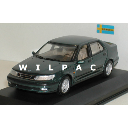 Saab 9-5 2.3T in donkergroen metallic, modeljaar 1997.